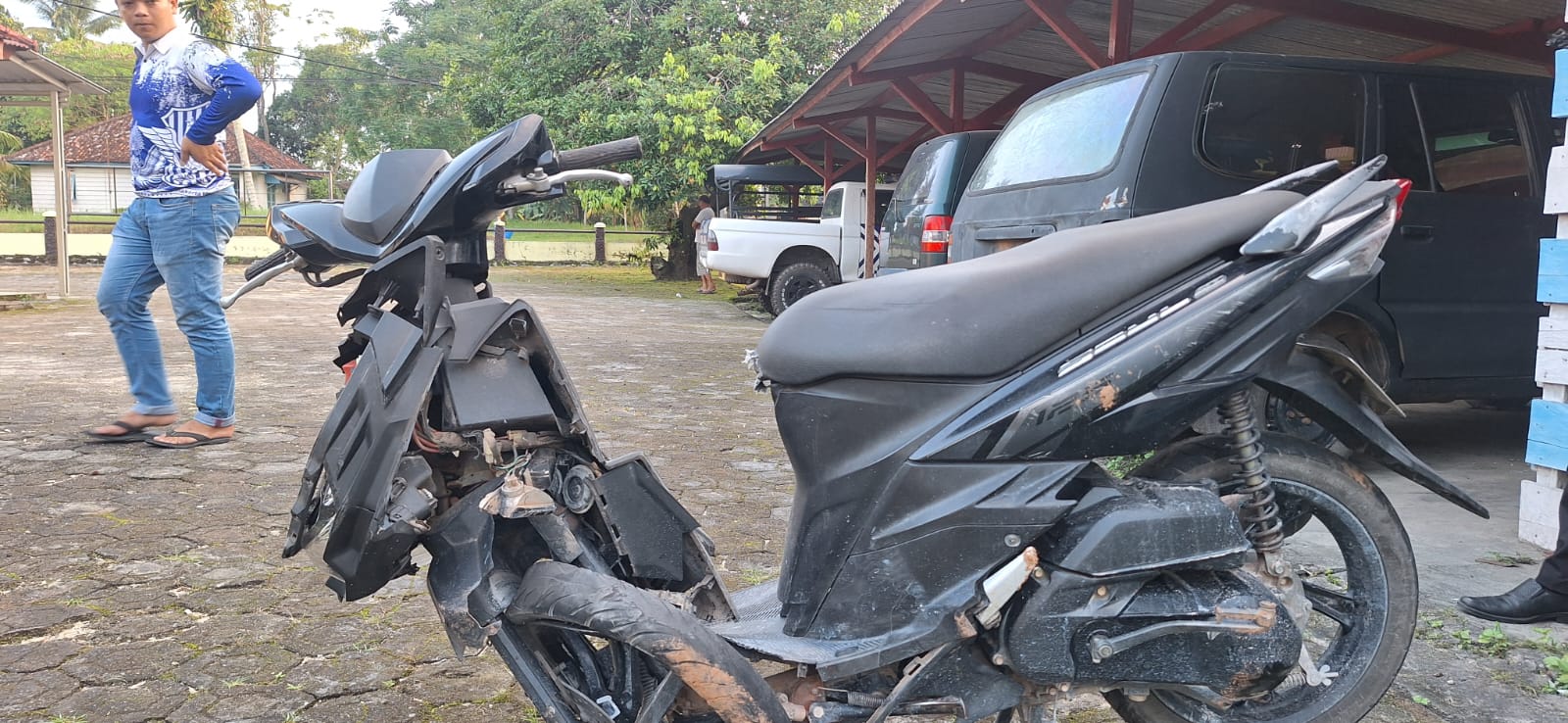 Saat hendak menyeberang ke jalur utama Jalan Raya Bakit, sepeda motor tersebut diduga tidak memperhatikan arus kendaraan yang datang dari arah berlawanan hingga menabrak bagian velg roda belakang sebelah kiri mobil Mitsubishi L300.