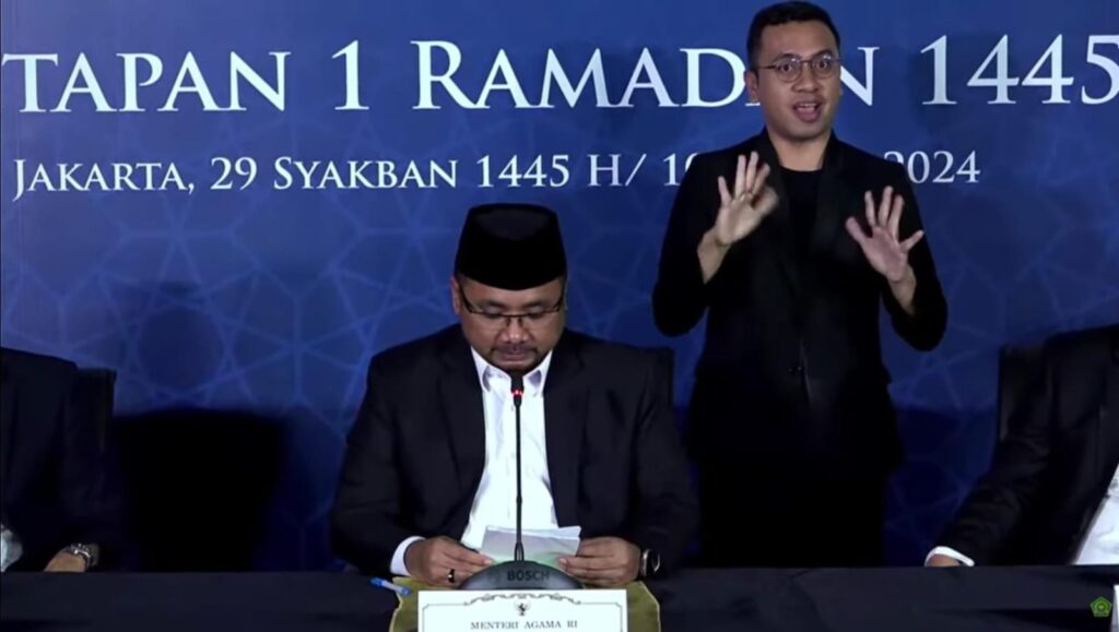 Kepala Kemenag Yaqud Cholil Qoumas pada minggu (10/03/2023), melalui siaran konperensi pers menyatakan secara langsung penetapan tersebut bersama para duta sahabat dan organisasi masyarakat islam menyatakan 1 ramadhan 1445 jatuh pada selasa 12 maret 2024.