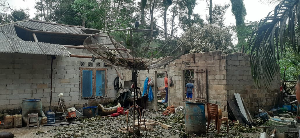 Dalam pantauan dilokasi kejadian terlihat jelas rumah-rumah yang terdampak puting beliung atap rumahnya rusak sehingga harus ditutupi dengan terpal.