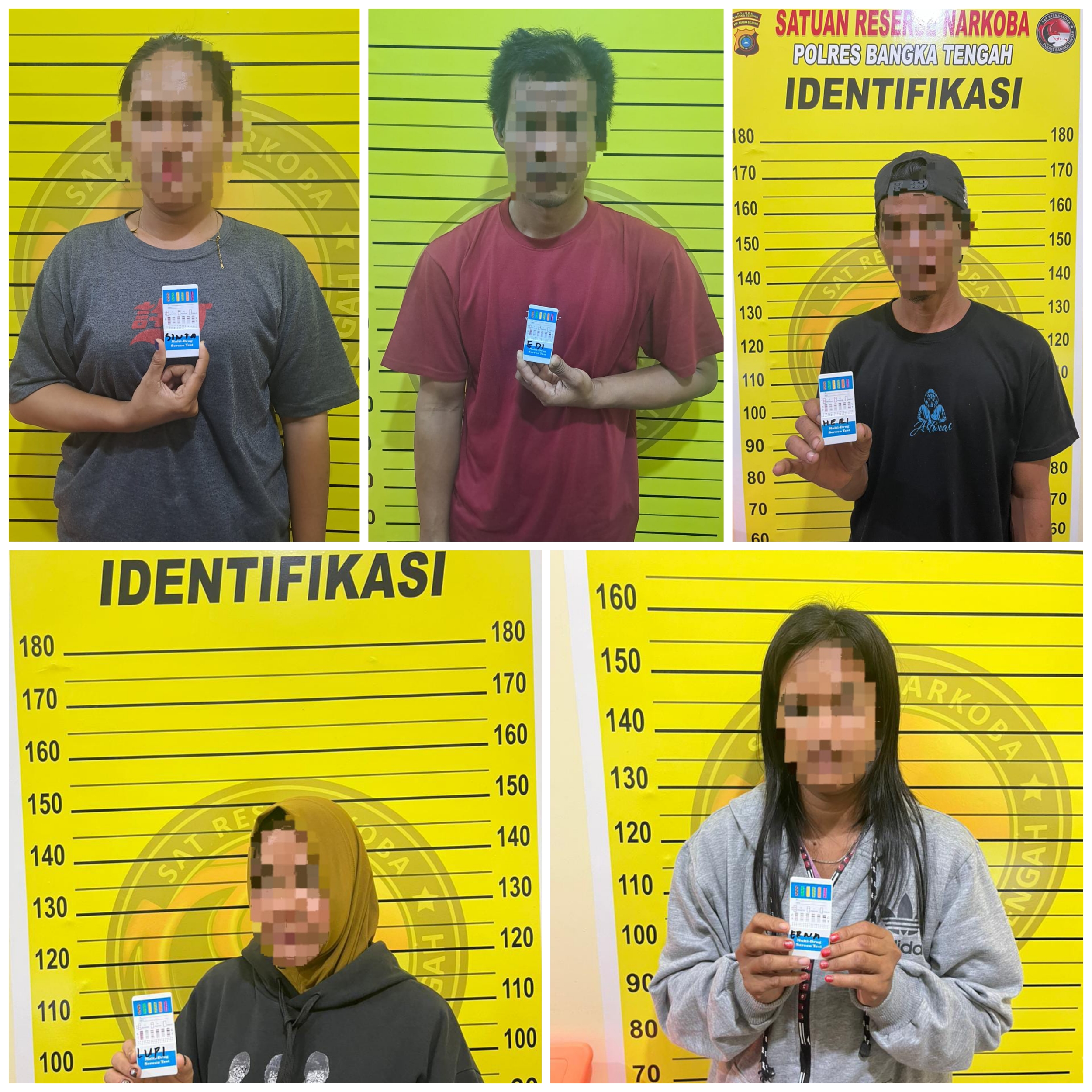 Hasilnya, lima orang warga diamankan dan selanjutnya diserahkan ke Badan Narkotika Nasional Provinsi (BNNP) Pangkalpinang untuk menjalani rehabilitasi setelah dinyatakan positif metamfetamin berdasarkan hasil tes urine.