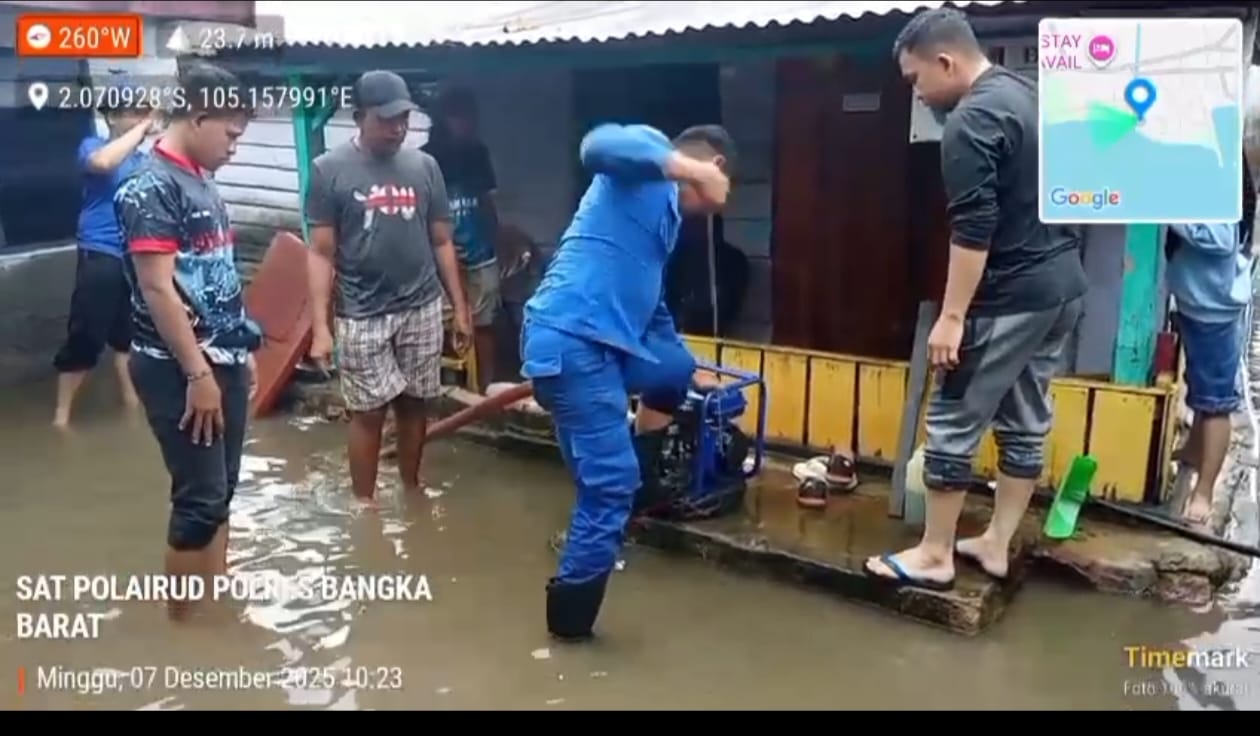Untuk membantu warga, Satuan Polairud Polres Bangka Barat menyalurkan bantuan berupa mesin pompa air. Peralatan tersebut digunakan untuk mempercepat proses pengeringan air yang merendam rumah-rumah warga di pesisir.
