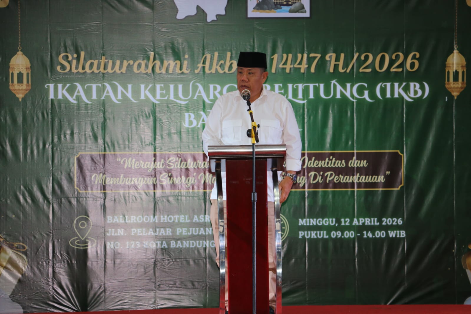 Bandung, Pramedia.id – Gubernur Kepulauan Bangka Belitung (Babel) Hidayat Arsani menghadiri secara langsung acara Silaturahmi Akbar 1447 H yang digelar oleh Ikatan Keluarga Belitung (IKB). Kegiatan tersebut bertempat di Ballroom Hotel Asrilia, Kota Bandung, Jawa Barat, Minggu (12/4/2026).