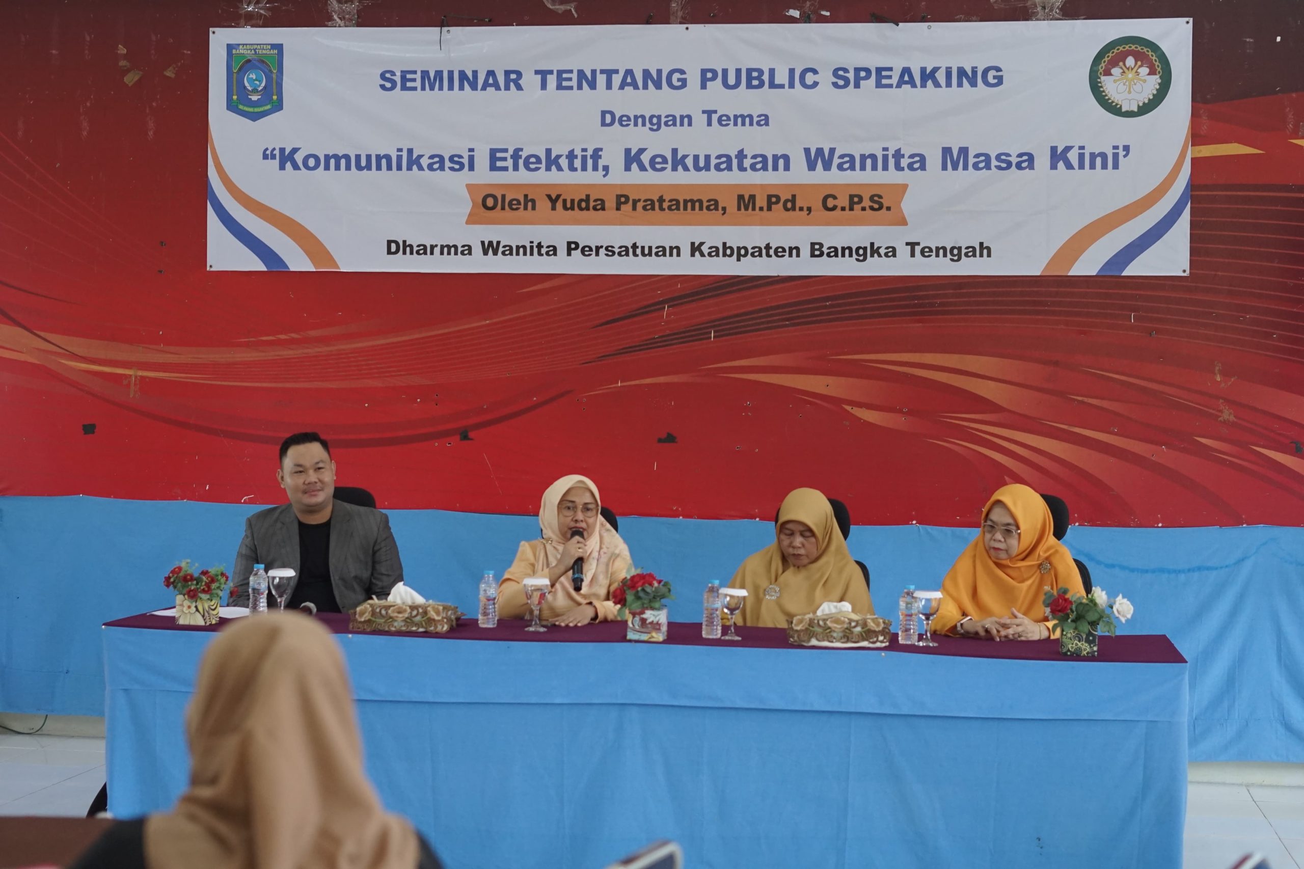 KOBA – Dharma Wanita Persatuan (DWP) Bidang Pendidikan Kabupaten Bangka Tengah (Bateng) menggelar seminar public speaking dengan menghadirkan narasumber Yuda Pratama, M.Pd., C.P.S. dengan mengusung tema “Komunikasi Efektif, Kekuatan Wanita Masa Kini”.