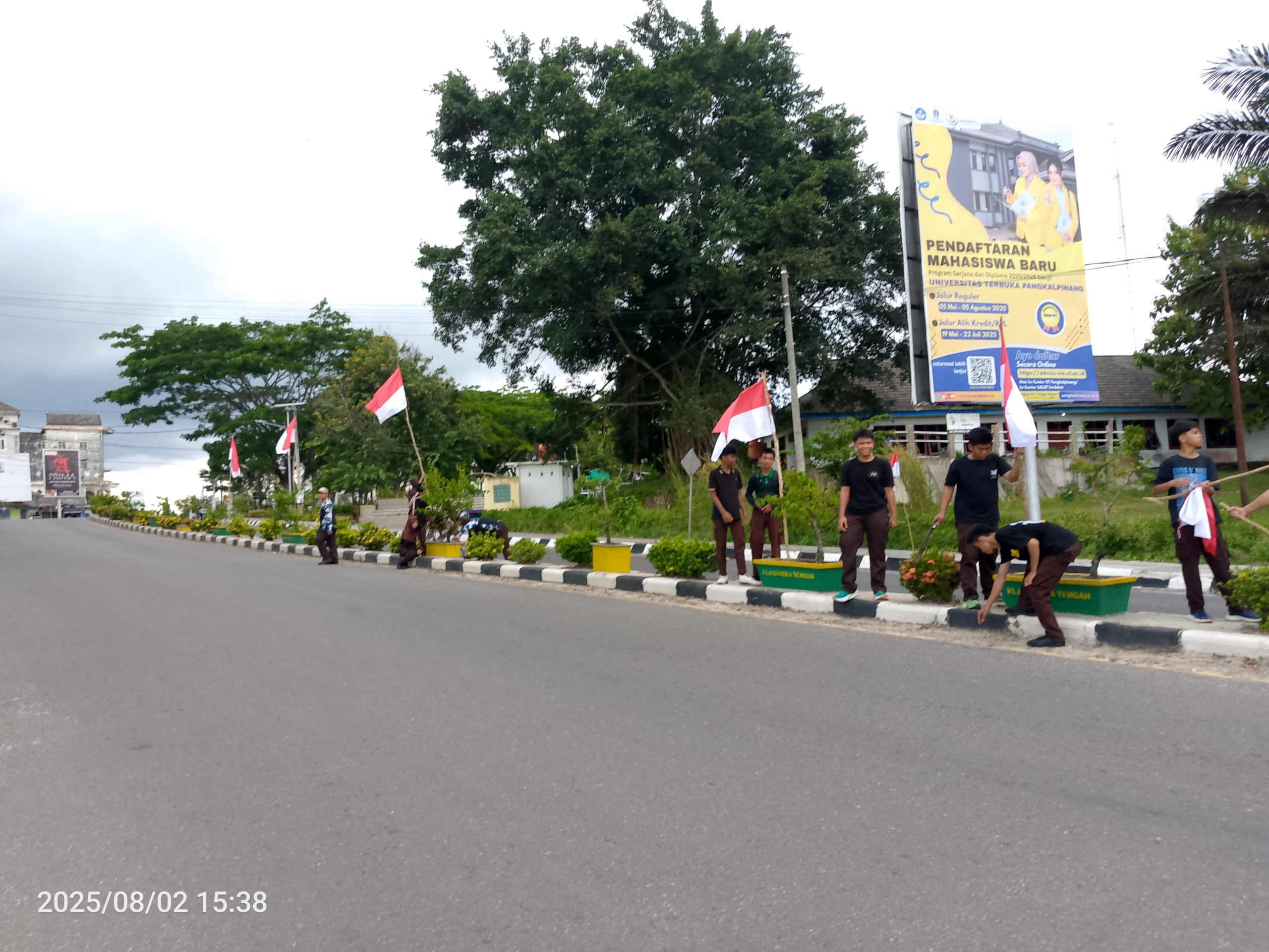 KOBA – Menjelang peringatan Hari Ulang Tahun Kemerdekaan Republik Indonesia yang ke-80, Saka Wira Kartika Koramil 413-07/ Koba bagikan puluhan bendera Merah Putih kepala pengendara yang melintas di Bundaran Koba.