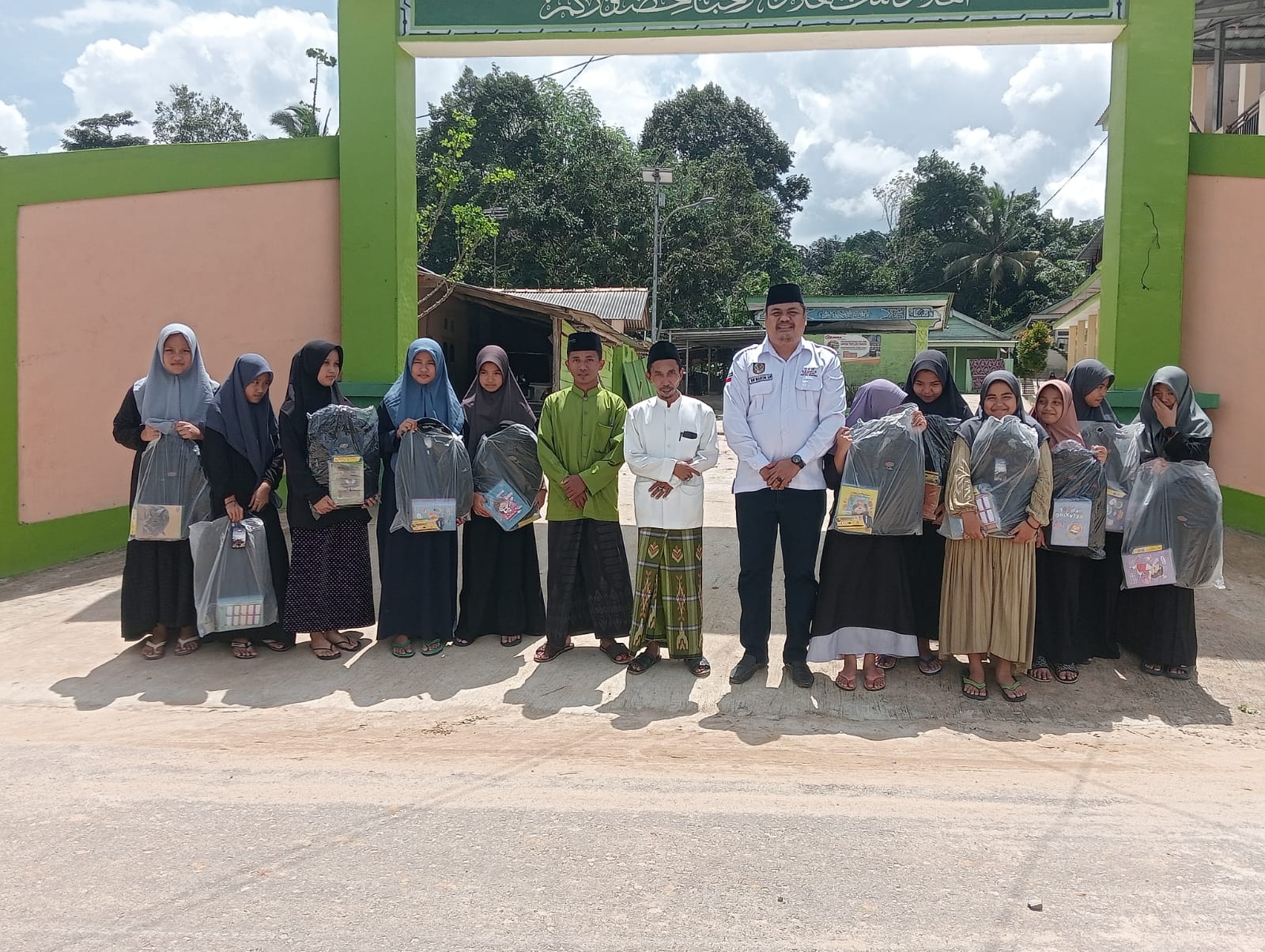 Ia juga mengucapkan terimakasih kepada Ponpes Raudlatul Muta’alimkn AL Baisyuni yang telah memfasilitasi penyaluran alat tulis ke santri – santriwati mereka.
