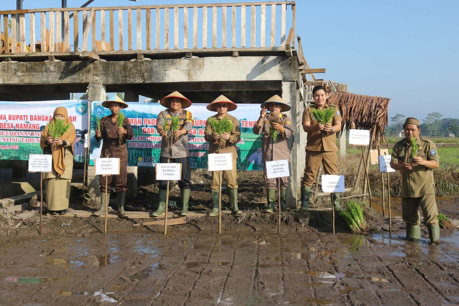Perkuat Ketahanan Panga, Pemkab Bangka Tengah Tanam Padi Dan Bagi Beras Ke Masyarakat
