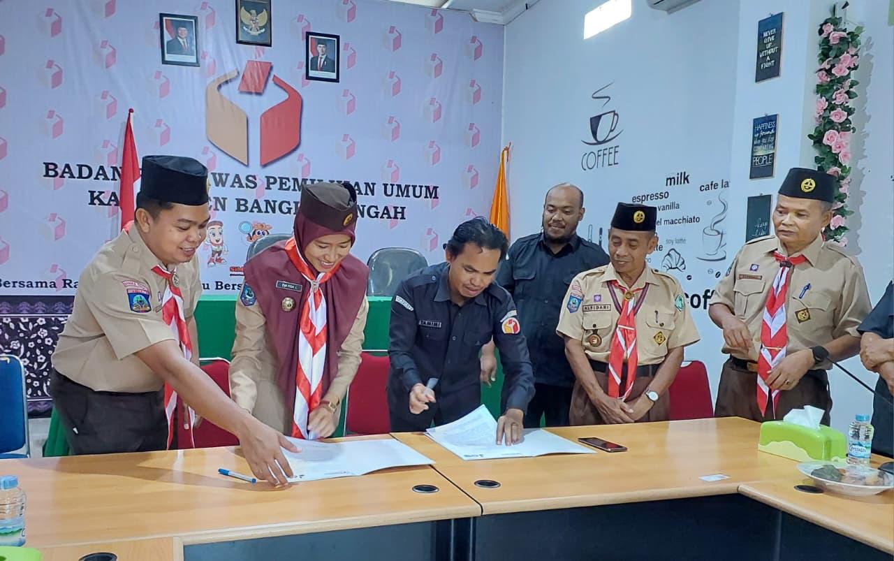 Bangka Tengah, Pramedia.id – Badan Pengawas Pemilihan Umum (Bawaslu) Kabupaten Bangka Tengah (Bateng) menjalin kerja sama dengan Kwartir Cabang (Kwarcab) Gerakan Pramuka Kabupaten Bangka Tengah melalui penandatanganan Perjanjian Kerja Sama (PKS) tentang pelibatan anggota Gerakan Pramuka dalam pengawasan partisipatif pada Pemilihan dan Pemilihan Umum.