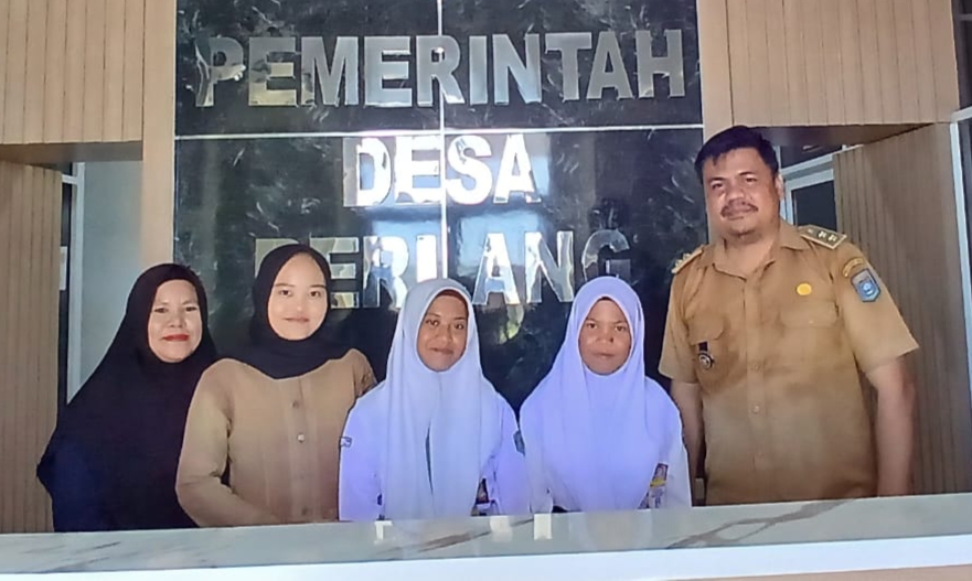 Kesepakatan ini ditandai dengan kedatangan dua orang siswi SMKN 2 Koba ke kantor desa pada Selasa (14/10/2025). Kedua siswi tersebut disambut langsung oleh Kepala Desa (Kades) Perlang, Yani Basaroni.