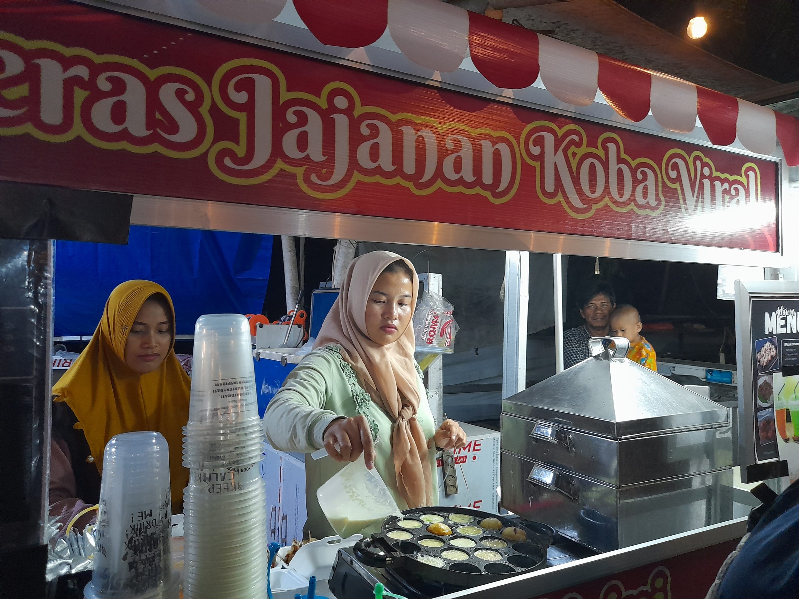 Selain menyajikan Takoyaki, ada pula jajanan Pentol Dower, Sate Taichan, aneka pisang dan aneka es, dengan harga mulai dari 6 ribu.