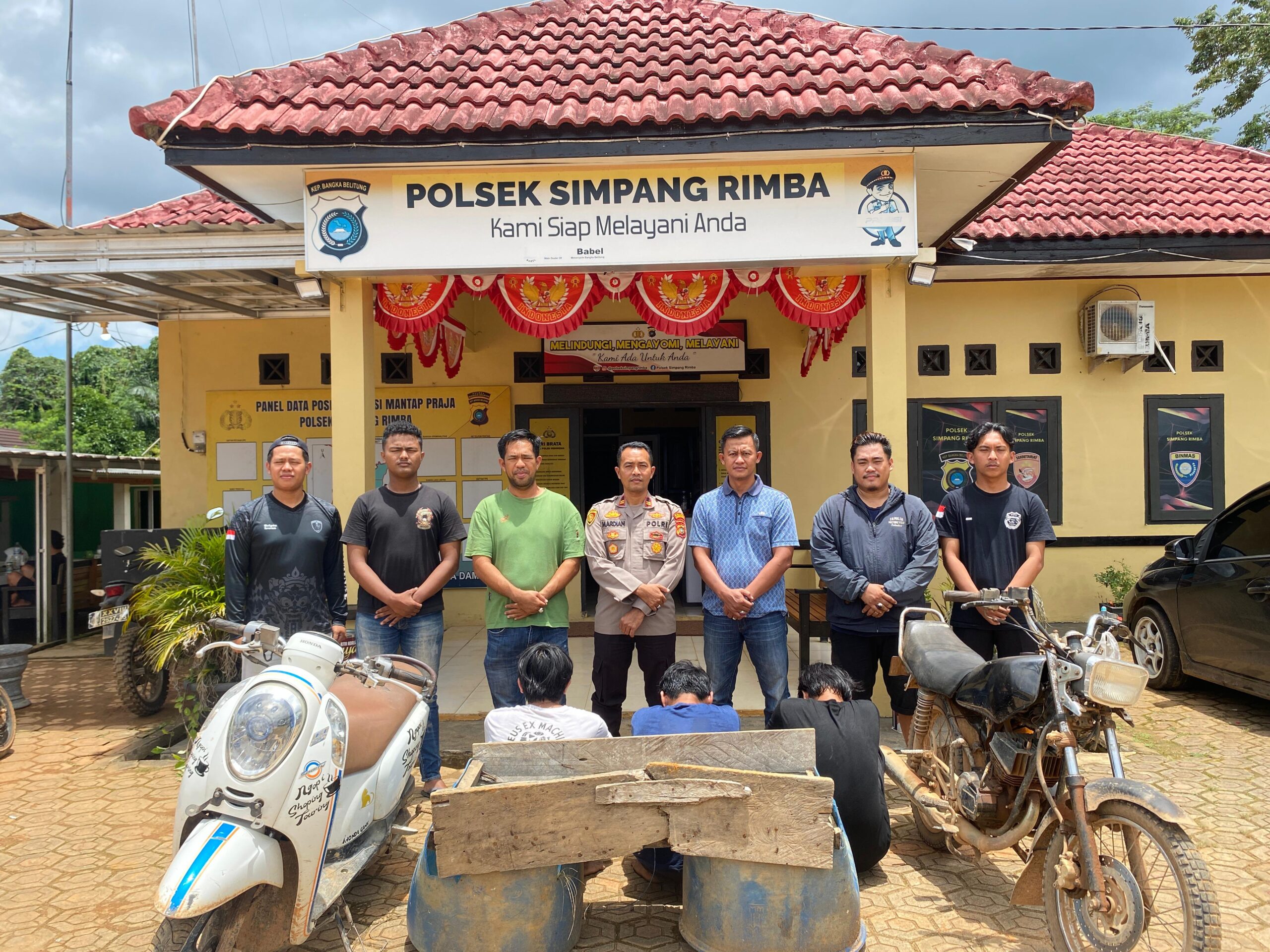 Selanjutnya unit Reskrim Polsek Simpang Rimba melakukan penangkapan terhadap 3 orang laki laki yang bernama diduga terduga pelaku yakni, AO, AT dan INAS. Ketiga terduga pelaku tangkap di kediaman mereka yang beralamat Desa Jelutung 2 sedangkan satu orang lagi BY berhasil melarikan diri.