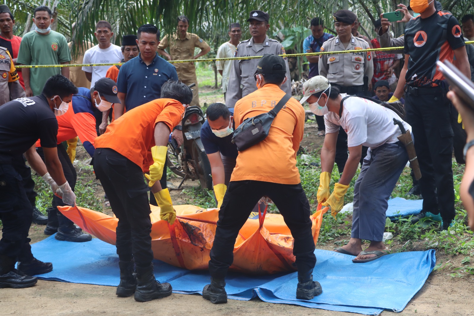 Berdasarkan keterangan yang didapat, jenazah pertama kali ditemukan oleh 2 orang warga sesama petani yang sedang memupuk di kebun sawit milik warga tersebut.