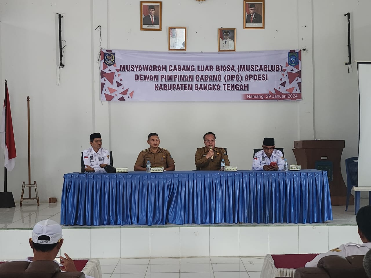 BANGKA TENGAH – Dewan Pimpinan Cabang Asosiasi Kepala Desa Seluruh indonesia Bangka Tengah (DPC APDESI Bateng) menggelar musyawarah Cabang Luar Liasa (muscablub) untuk pemilihan ketua APDESI Bangka Tengah secara Aklamasi, Senin (29/1/2024) di gedung serbaguna Namang.